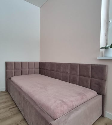 galvūgalio nugarėlės aptraukimas audiniu + 30 eurų (aktualu, jei lova nesistatys į kampą)